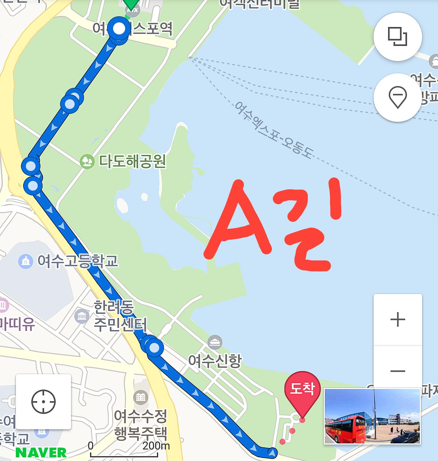 네이버 길 찾기엔 이런 길로 ("A"길이라 하겠습니다.)