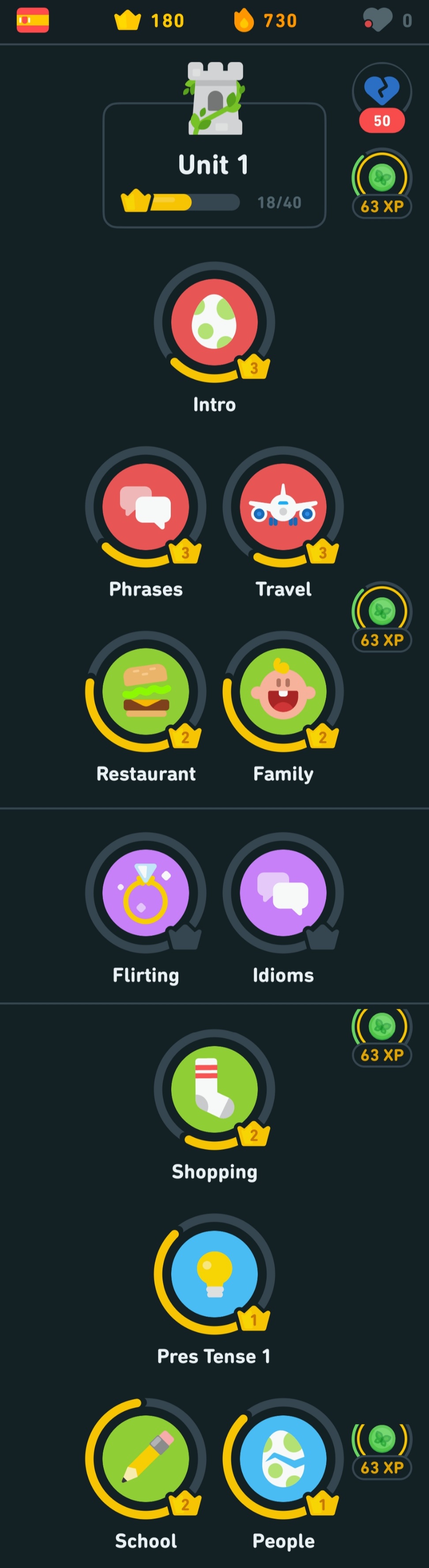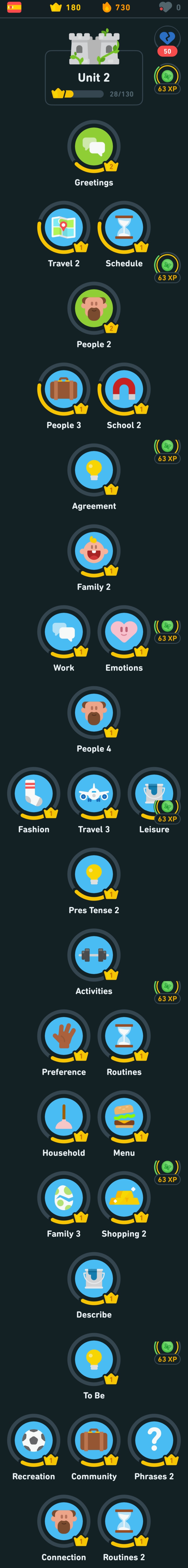 어떤 설명은 듀오링고보다 더 자세하니 SpainishDict도 병행하면 좋으실 듯싶습니다. 저것도 간간히 병행할 생각입니다. 설명은 SpainishDict가 더 괜찮은 거 같은데 과정이 너무 없는 편이에요.