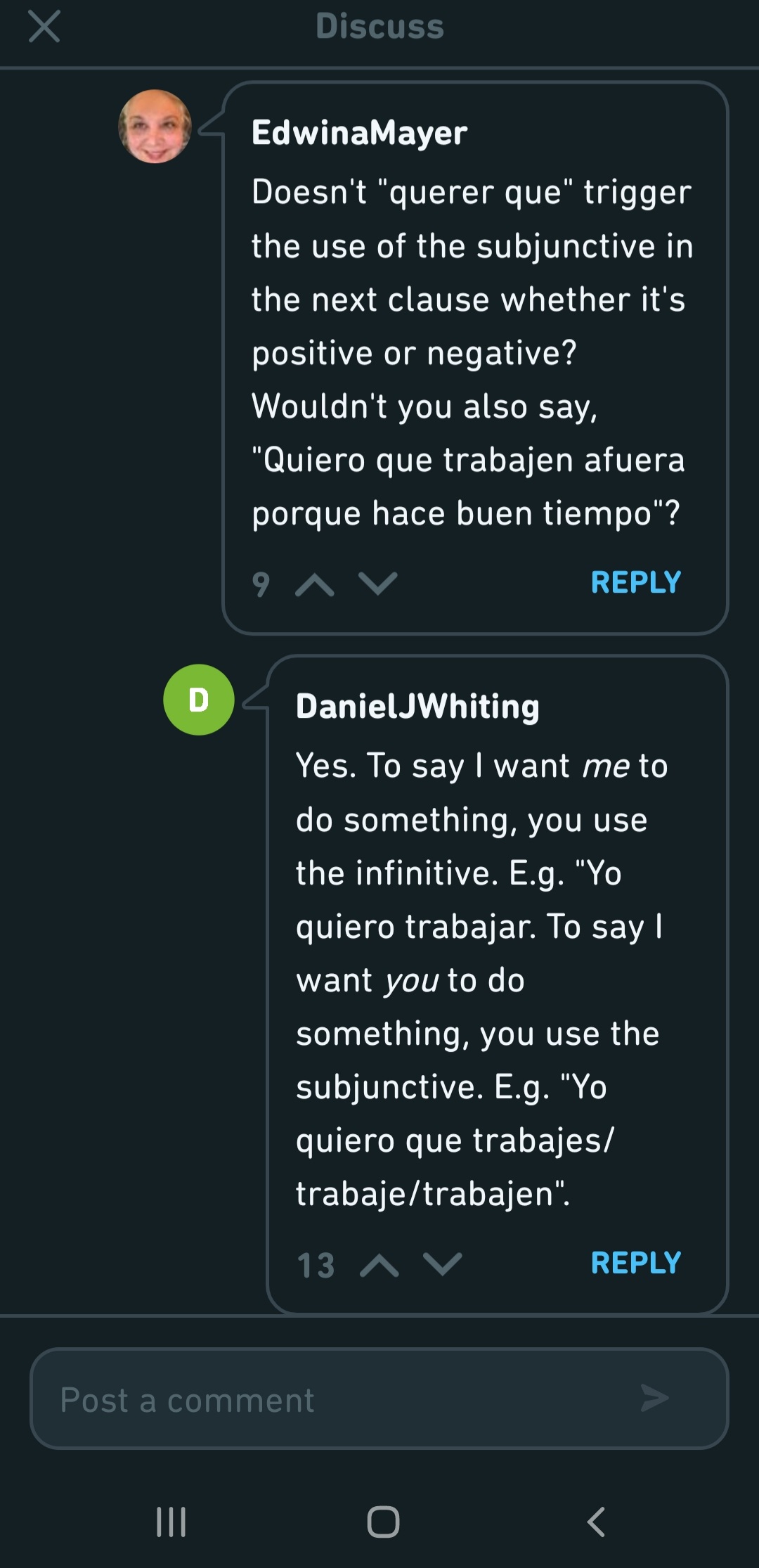 여기서도 quiero que ustedes trabajan이 trabajen으로...